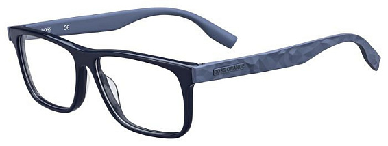 Прямоугольные очки, из материала пластик и цвете синий помогут понять основные черты новой коллекции оправ модного бренда BOSS ORANGE.