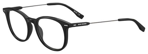Овальные очки, из материала пластик и цвете черный помогут понять основные черты новой коллекции оправ модного бренда BOSS ORANGE.