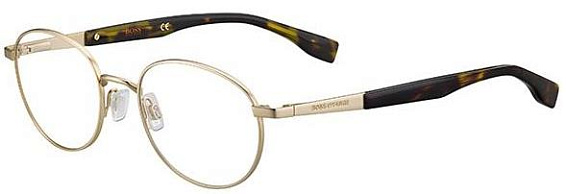 Овальные очки, из материала пластик и цвете золото помогут понять основные черты новой коллекции оправ модного бренда BOSS ORANGE.