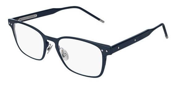 Прямоугольные очки, из материала пластик и цвете синий помогут понять основные черты новой коллекции оправ модного бренда BOTTEGA VENETA.