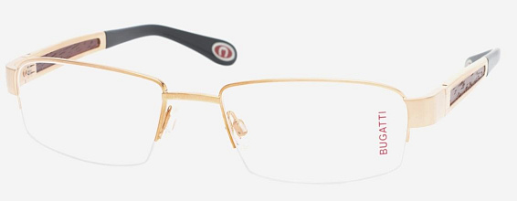 Прямоугольные очки, из материала традиционные металлы и цвете золото помогут понять основные черты новой коллекции оправ модного бренда BUGATTI.