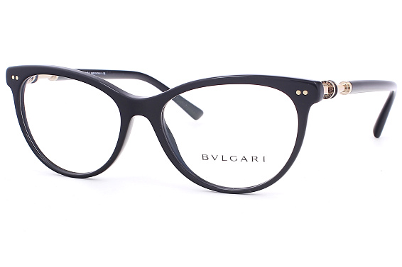 Прямоугольные очки, из материала пластик и цвете черный помогут понять основные черты новой коллекции оправ модного бренда BVLGARI.