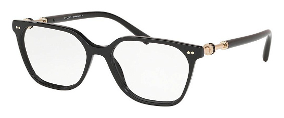 Прямоугольные очки, из материала пластик и цвете черный помогут понять основные черты новой коллекции оправ модного бренда BVLGARI.