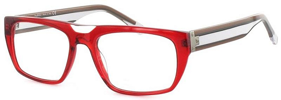 Прямоугольные очки, из материала пластик и цвете красный помогут понять основные черты новой коллекции оправ модного бренда BYBLOS.