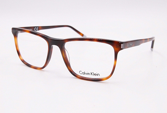 Прямоугольные очки, из материала пластик и цвете коричневый помогут понять основные черты новой коллекции оправ модного бренда CALVIN KLEIN.