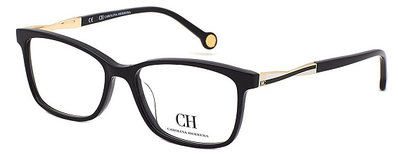 Прямоугольные очки, из материала пластик и цвете черный помогут понять основные черты новой коллекции оправ модного бренда CAROLINA HERRERA.