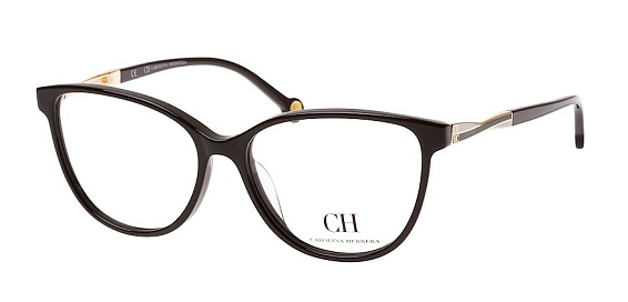 Прямоугольные очки, из материала пластик и цвете черный помогут понять основные черты новой коллекции оправ модного бренда CAROLINA HERRERA.