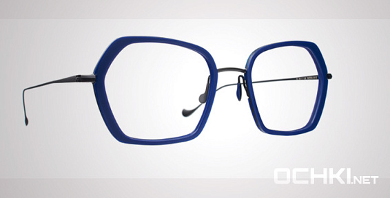 Прямоугольные очки, из материала пластик и цвете синий помогут понять основные черты новой коллекции оправ модного бренда CAROLINE ABRAM.