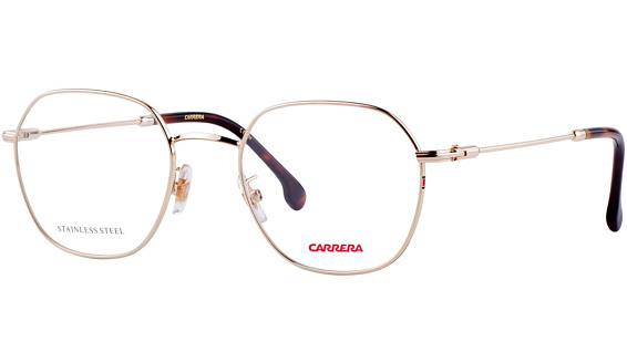 Прямоугольные очки, из материала традиционные металлы и цвете золото помогут понять основные черты новой коллекции оправ модного бренда CARRERA.