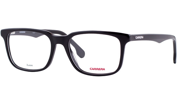 Прямоугольные очки, из материала пластик и цвете черный помогут понять основные черты новой коллекции оправ модного бренда CARRERA.