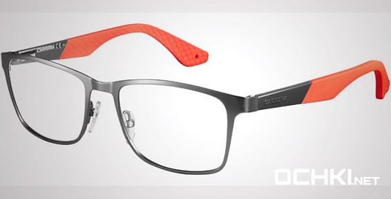 Прямоугольные очки, из материала пластик и цвете серый помогут понять основные черты новой коллекции оправ модного бренда CARRERA.