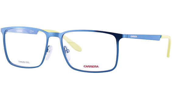 Прямоугольные очки, из материала традиционные металлы и цвете синий помогут понять основные черты новой коллекции оправ модного бренда CARRERA.