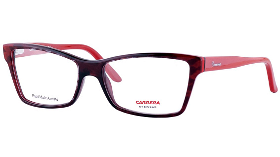 Прямоугольные очки, из материала пластик и цвете бордовый помогут понять основные черты новой коллекции оправ модного бренда CARRERA.
