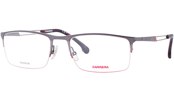 Прямоугольные очки, из материала пластик и цвете серый помогут понять основные черты новой коллекции оправ модного бренда CARRERA.