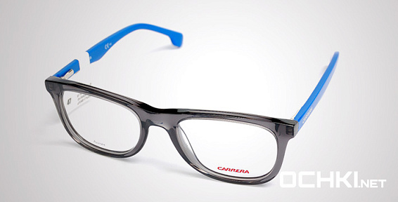 Прямоугольные очки, из материала пластик и цвете синий помогут понять основные черты новой коллекции оправ модного бренда CARRERA.