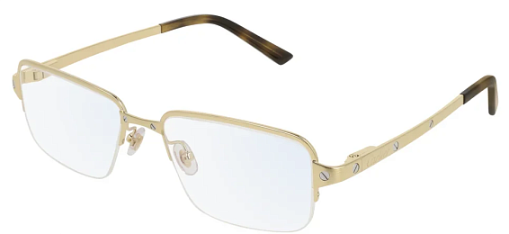 Прямоугольные очки, из материала традиционные металлы и цвете золото помогут понять основные черты новой коллекции оправ модного бренда CARTIER.
