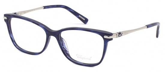 Прямоугольные очки, из материала пластик и цвете синий помогут понять основные черты новой коллекции оправ модного бренда CHOPARD.