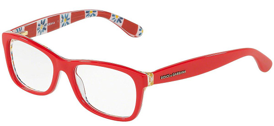 Прямоугольные очки, из материала пластик и цвете красный помогут понять основные черты новой коллекции оправ модного бренда D&G.