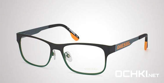 Прямоугольные очки, из материала традиционные металлы и цвете металлик помогут понять основные черты новой коллекции оправ модного бренда DIESEL.