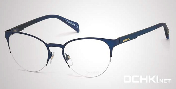 Овальные очки, из материала пластик и цвете синий помогут понять основные черты новой коллекции оправ модного бренда DIESEL.
