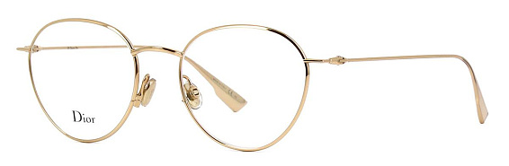 Круглые очки, из материала традиционные металлы и цвете золото помогут понять основные черты новой коллекции оправ модного бренда DIOR.