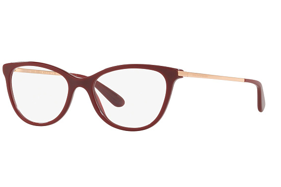 Прямоугольные очки, из материала пластик и цвете бордовый помогут понять основные черты новой коллекции оправ модного бренда DOLCE & GABBANA.