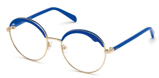 Круглые очки, из материала традиционные металлы и цвете синий помогут понять основные черты новой коллекции оправ модного бренда EMILIO PUCCI.