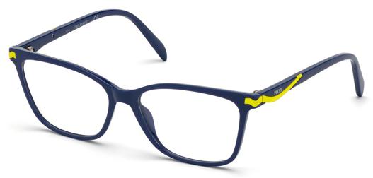 Прямоугольные очки, из материала пластик и цвете синий помогут понять основные черты новой коллекции оправ модного бренда EMILIO PUCCI.
