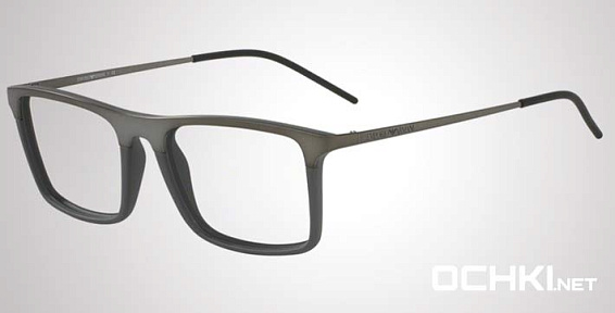 Прямоугольные очки, из материала пластик и цвете металлик помогут понять основные черты новой коллекции оправ модного бренда EMPORIO ARMANI.