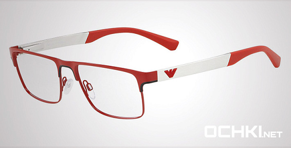 Прямоугольные очки, из материала пластик и цвете красный помогут понять основные черты новой коллекции оправ модного бренда EMPORIO ARMANI.