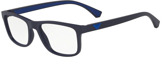 Прямоугольные очки, из материала пластик и цвете синий помогут понять основные черты новой коллекции оправ модного бренда EMPORIO ARMANI.