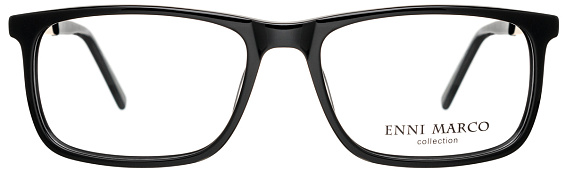 Прямоугольные очки, из материала пластик и цвете черный помогут понять основные черты новой коллекции оправ модного бренда ENNI MARCO.