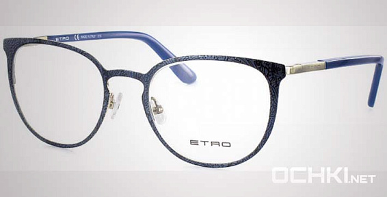 Кошачий глаз очки, из материала пластик и цвете синий помогут понять основные черты новой коллекции оправ модного бренда ETRO.