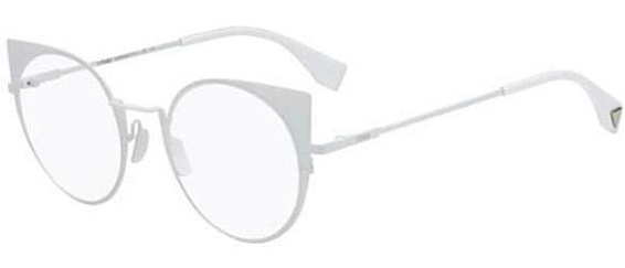Кошачий глаз очки, из материала традиционные металлы и цвете белый помогут понять основные черты новой коллекции оправ модного бренда FENDI.
