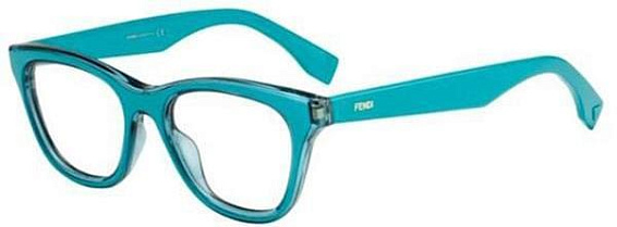 Прямоугольные очки, из материала пластик и цвете голубой помогут понять основные черты новой коллекции оправ модного бренда FENDI.