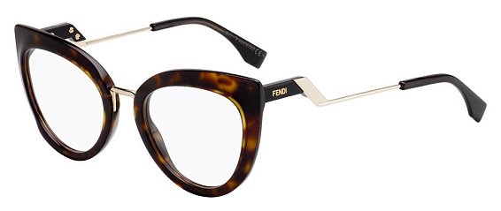 Кошачий глаз очки, из материала традиционные металлы и цвете коричневый помогут понять основные черты новой коллекции оправ модного бренда FENDI.