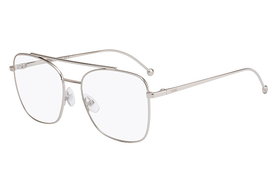Прямоугольные очки, из материала традиционные металлы и цвете серебро помогут понять основные черты новой коллекции оправ модного бренда FENDI.