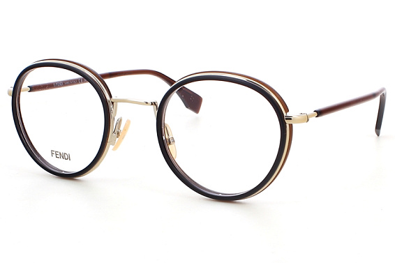 Круглые очки, из материала пластик и цвете черный помогут понять основные черты новой коллекции оправ модного бренда FENDI.