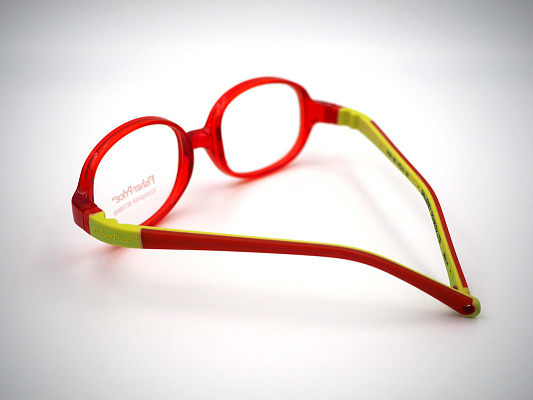 Прямоугольные очки, из материала пластик и цвете красный помогут понять основные черты новой коллекции оправ модного бренда FISHER-PRICE.