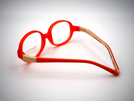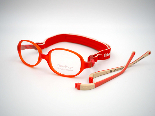 Прямоугольные очки, из материала пластик и цвете оранжевый помогут понять основные черты новой коллекции оправ модного бренда FISHER-PRICE.