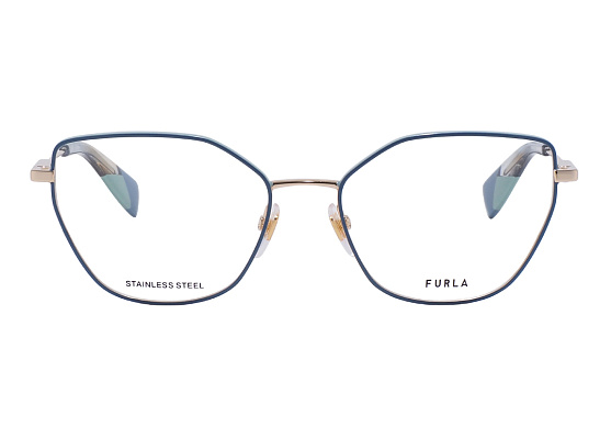 Кошачий глаз очки, из материала традиционные металлы и цвете синий помогут понять основные черты новой коллекции оправ модного бренда FURLA.