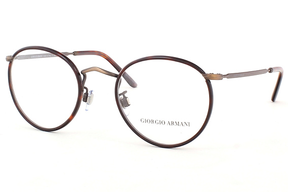 Круглые очки, из материала традиционные металлы и цвете коричневый помогут понять основные черты новой коллекции оправ модного бренда GIORGIO ARMANI.