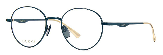 Прямоугольные очки, из материала традиционные металлы и цвете синий помогут понять основные черты новой коллекции оправ модного бренда GUCCI.