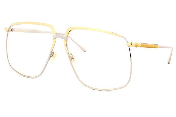 Прямоугольные очки, из материала традиционные металлы и цвете золото помогут понять основные черты новой коллекции оправ модного бренда GUCCI.