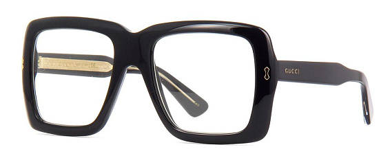 Прямоугольные очки, из материала пластик и цвете черный помогут понять основные черты новой коллекции оправ модного бренда GUCCI.