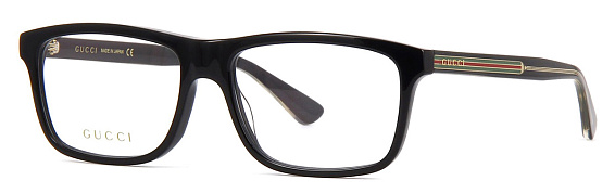Прямоугольные очки, из материала пластик и цвете черный помогут понять основные черты новой коллекции оправ модного бренда GUCCI.