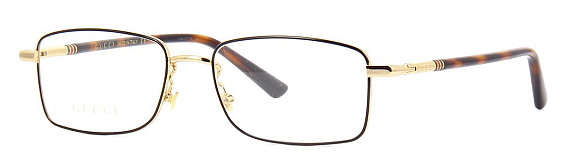 Прямоугольные очки, из материала пластик и цвете золото помогут понять основные черты новой коллекции оправ модного бренда GUCCI.
