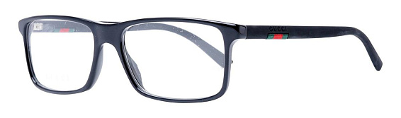 Прямоугольные очки, из материала пластик и цвете черный помогут понять основные черты новой коллекции оправ модного бренда GUCCI.