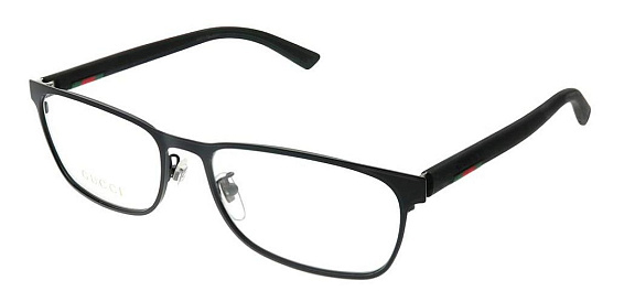 Прямоугольные очки, из материала пластик и цвете черный помогут понять основные черты новой коллекции оправ модного бренда GUCCI.
