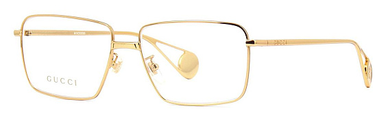 Прямоугольные очки, из материала традиционные металлы и цвете золото помогут понять основные черты новой коллекции оправ модного бренда GUCCI.